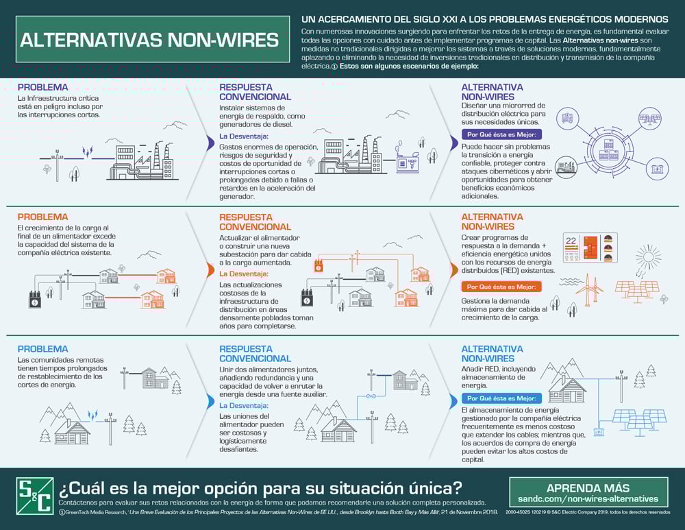 Las microrredes son una sofisticada solución alternativa de “non-wires” que se aplica mejor en áreas que requieren un alto nivel de resistencia, calidad de la electricidad y confiabilidad. S&C es un integrador de microrredes comprobado que ofrece una solución completa, desde controles hasta comunicaciones y hardware.